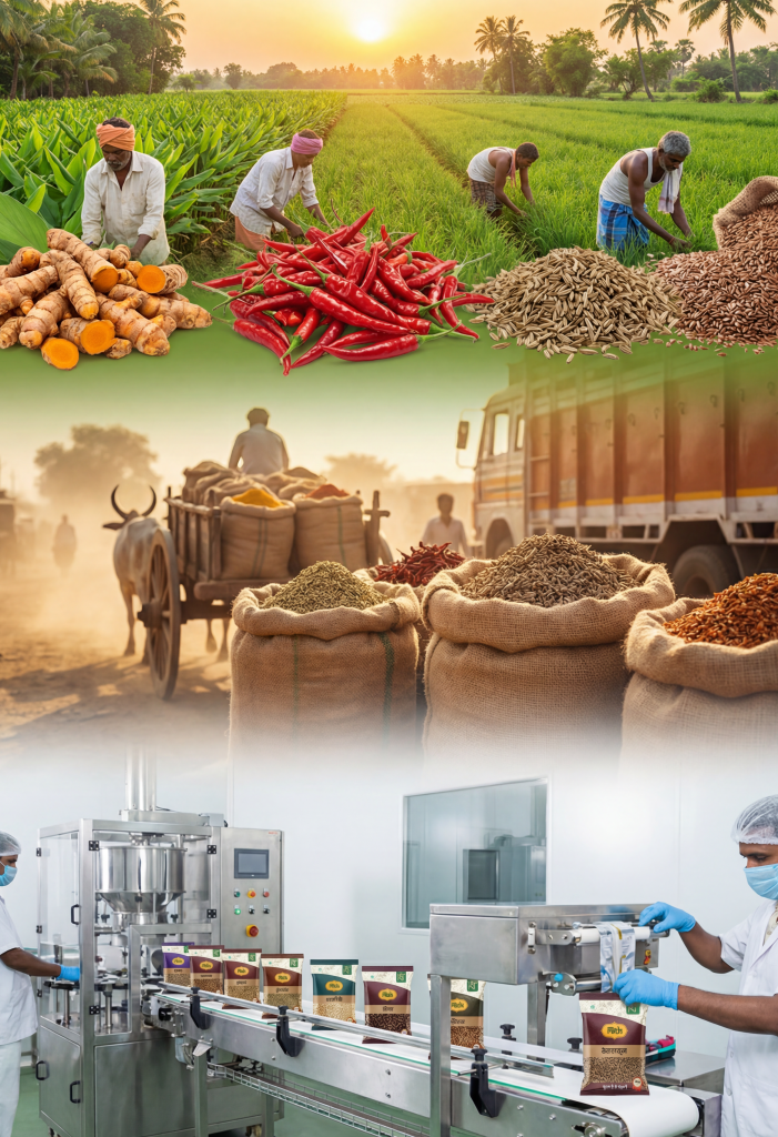 At KT Spices, we bring you a rich collection of handpicked, authentic spices sourced directly from trusted farms across India. Every spice is carefully selected, hygienically cleaned, and processed with precision to preserve its natural aroma, vibrant color, and strong flavor.